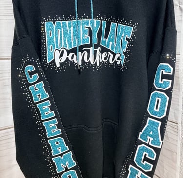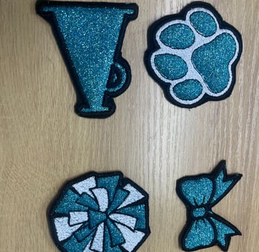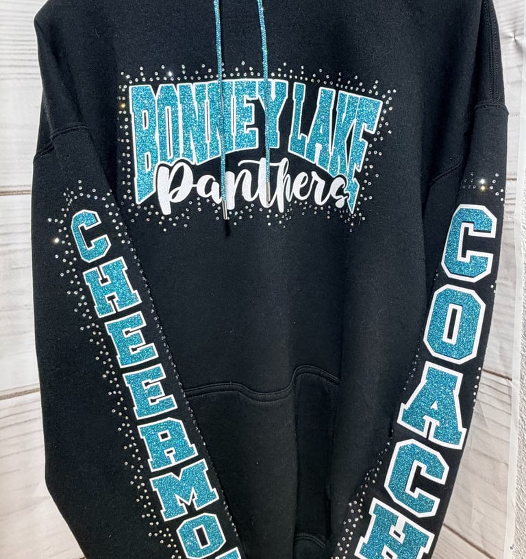 Blending performance with sparkle-rhinestone cheer bows, team apparel, and custom glitter creations