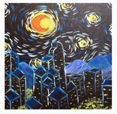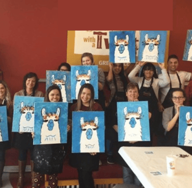 We offer a 2 hour block of services where we come to you, bring all the supplies, you provide the drinks and we teach your group how to paint while we party!